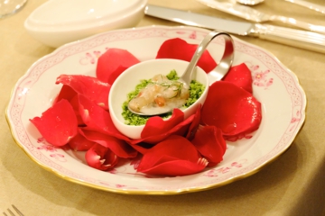 お届けするものは、何も食材だけとは限りません。料理に添える花びら一枚一枚が皆様の思いを奏でるエッセンスなのですから。